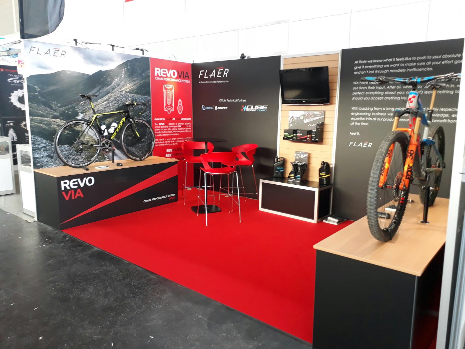 We were delighted to be able to launch our Revo Terra, the world’s first chain performance system for Mountain Bikes. The revolutionary new system attracted a lot of attention and we were able to showcase it on a team issue Cube Stereo thanks to our Official Technical Partners the Cube Action Team for lending us the bike for the show. We were also lucky enough to have an Orica-Scott team issue Scott Addict to display our Revo Via chain performance system on. Thanks to the guys at our Orica-Scott for this also.